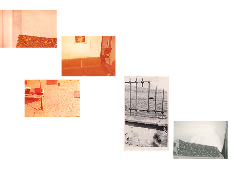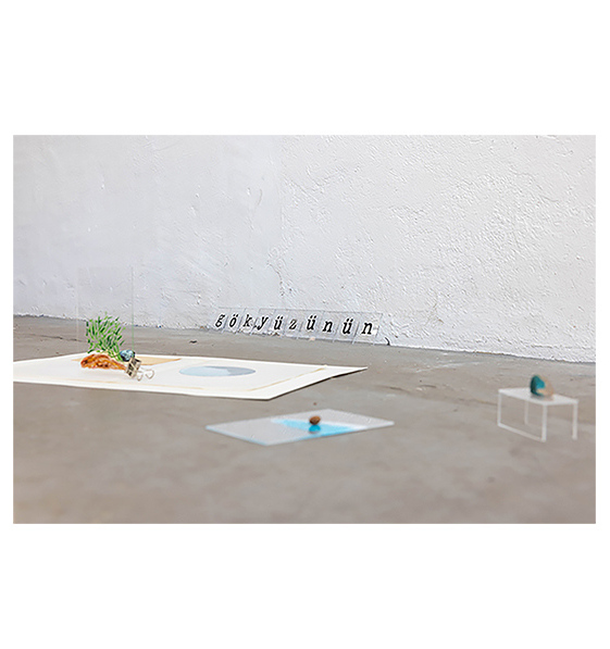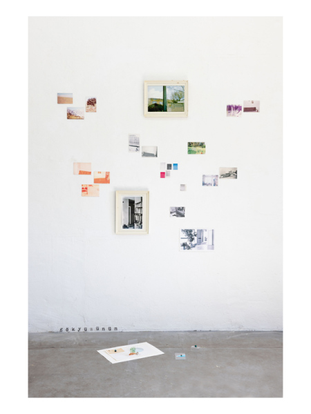 I selected some photographs from old family albums and transformed them, erasing the traces of the figures leaving only the backgrounds. I incorporated other elements in the installation of the work. The word “gökyüzünün” (to the sky), which is the beginning of the verse quoted, as well as other objects are here to explore the poetic possibilities of the work.
